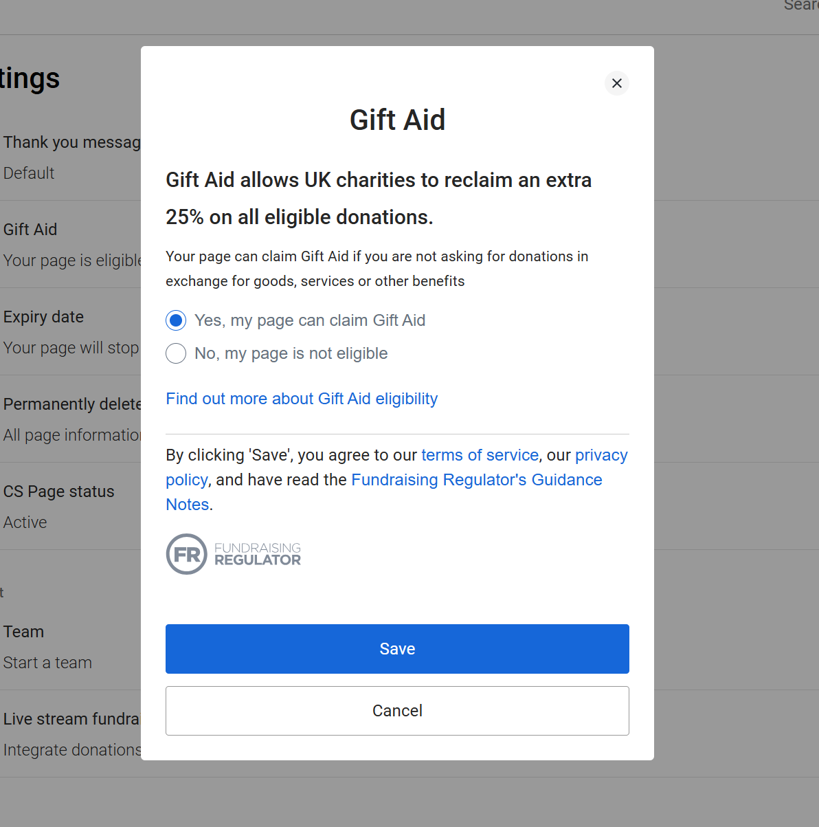- Yes, my page can claim Gift Aid – if your page meets the eligibility criteria.